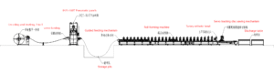 Through decoiling, continuous roll forming, and automatic cutting, the system produces customized profiles with high dimensional accuracy.